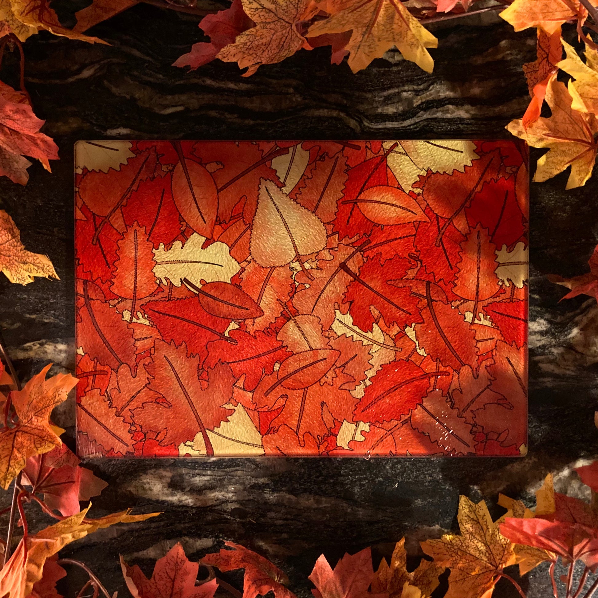 Autumn Leaves Glass Chopping Board