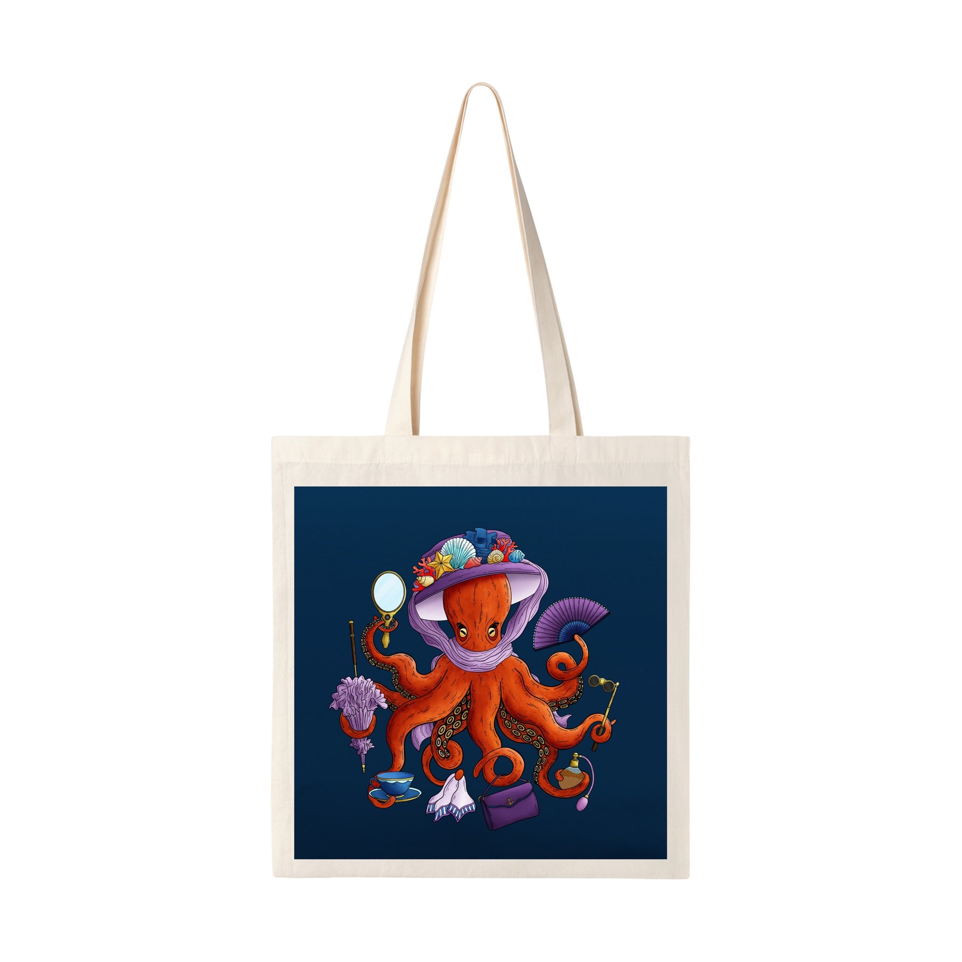 At the bottom of the sea there lives a 'Deeply Dainty' octopus. Alongside her 'Deeply Dapper' husband, she searches high and low along the seafloor for irresistibly dainty artefacts to add to her collection. You can carry a touch of deep sea elegance with you thanks to this tote bag featuring the original illustration 'Deeply Dainty' by Tom Mankin. This octopus bag is manufactured using soft, eco-friendly material and is an ideal way to keep all of your essentials close at hand.