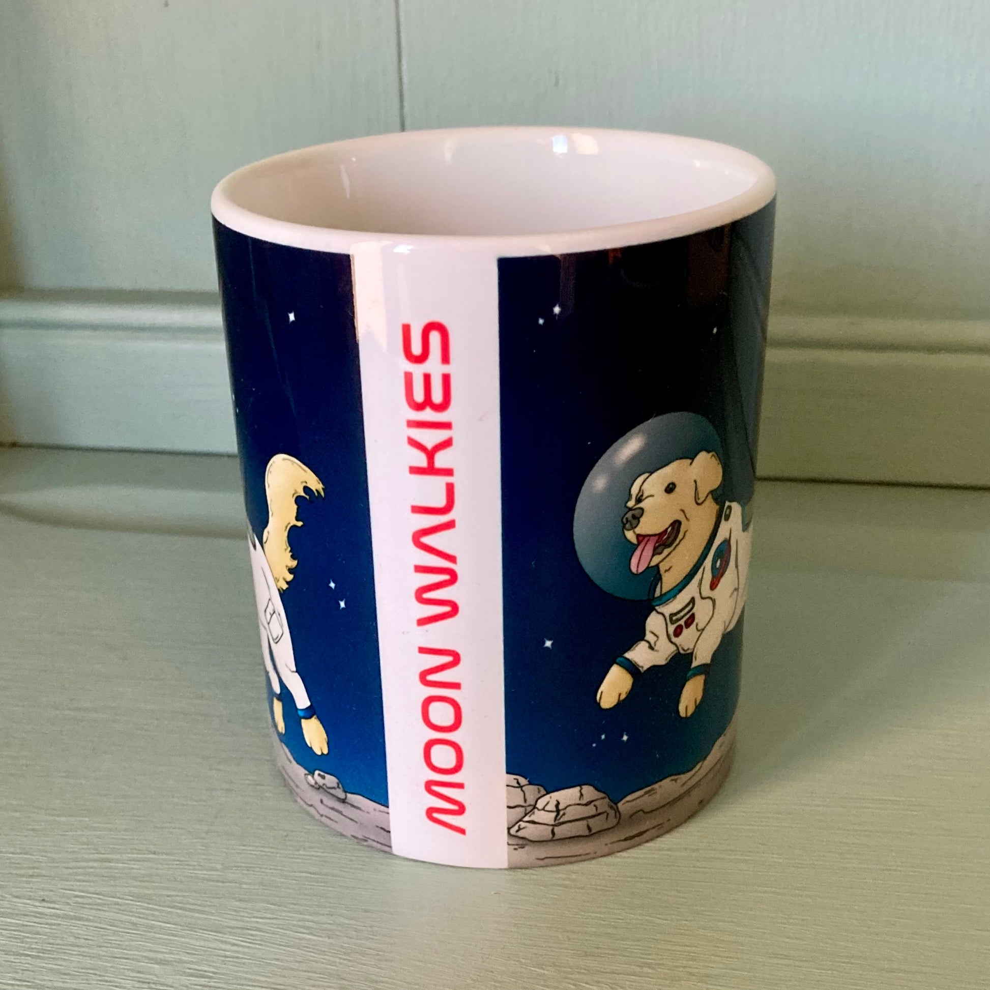 One small step for dog, one giant leap for canine kind... Bring some interstellar adventure to your coffee break with this ceramic mug featuring the original illustration 'Moon Walkies' by Tom Mankin. This astronaut dog mug has been printed in England and would make the perfect gift for dog lovers.