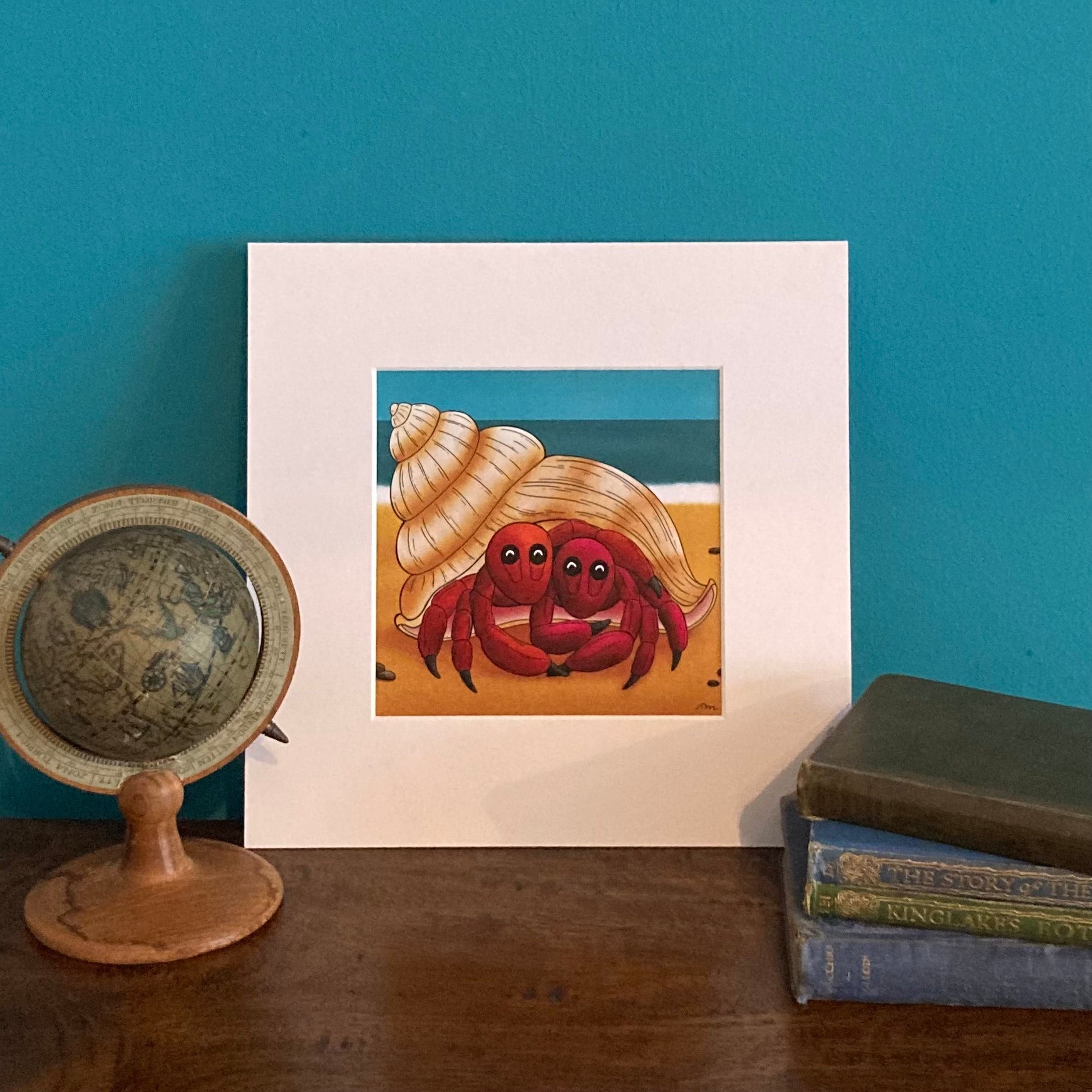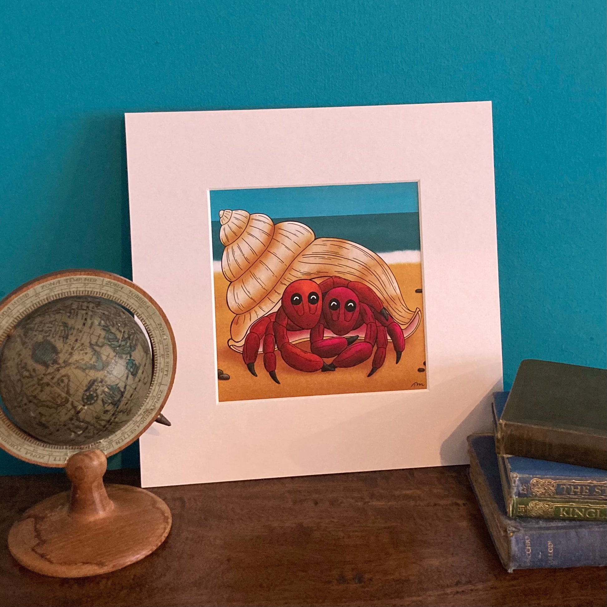 These happy hermit crabs are sure to brighten up any wall thanks to this mounted print of the original illustration 'There's No Shell Like Home' by Tom Mankin. Each of these hermit crab prints is mounted and ready to frame.