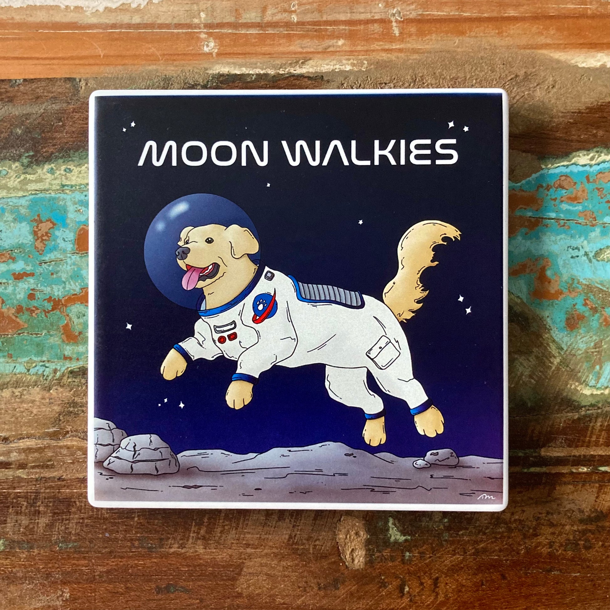 Moon Walkies Astronaut Dog Ceramic Coaster